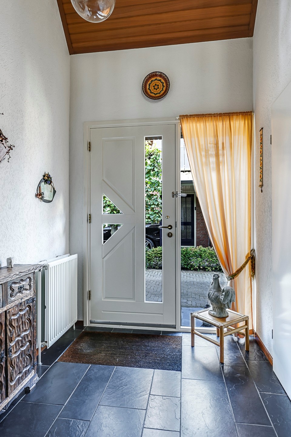 Je stapt binnen in een zeer ruime entreehal voorzien van leistenen vloer. Hier vind je het separate toilet met fonteintje en de trapopgang naar boven. Groot voordeel van deze woning: op de begane grond bevindt zich een royale slaapkamer met aangrenzende badkamer in lichte kleuren, voorzien van een wastafel, inloopdouche en ligbad. Kortom: ideaal voor levensloopbestendig wonen.