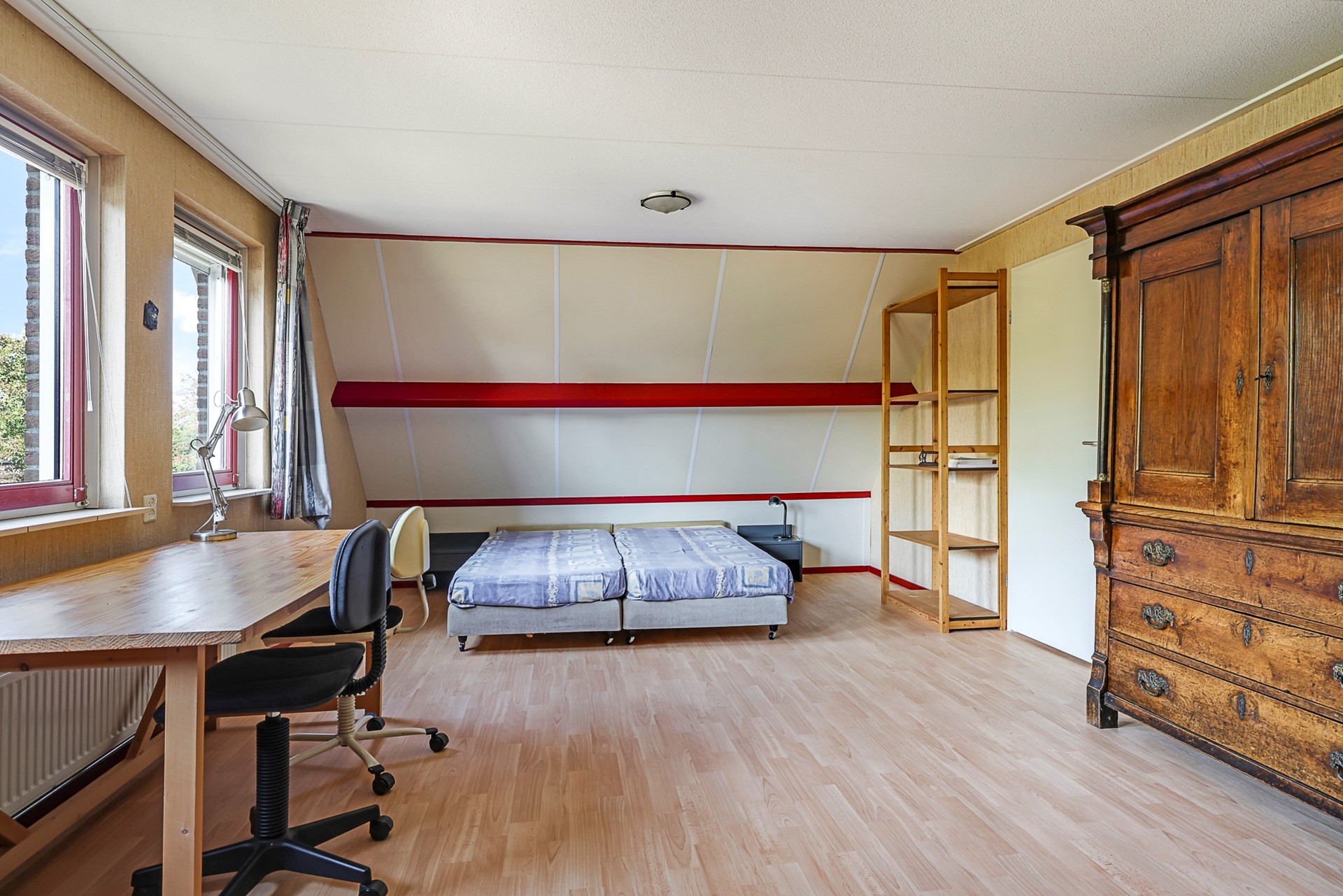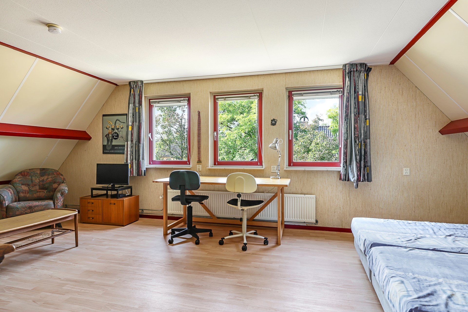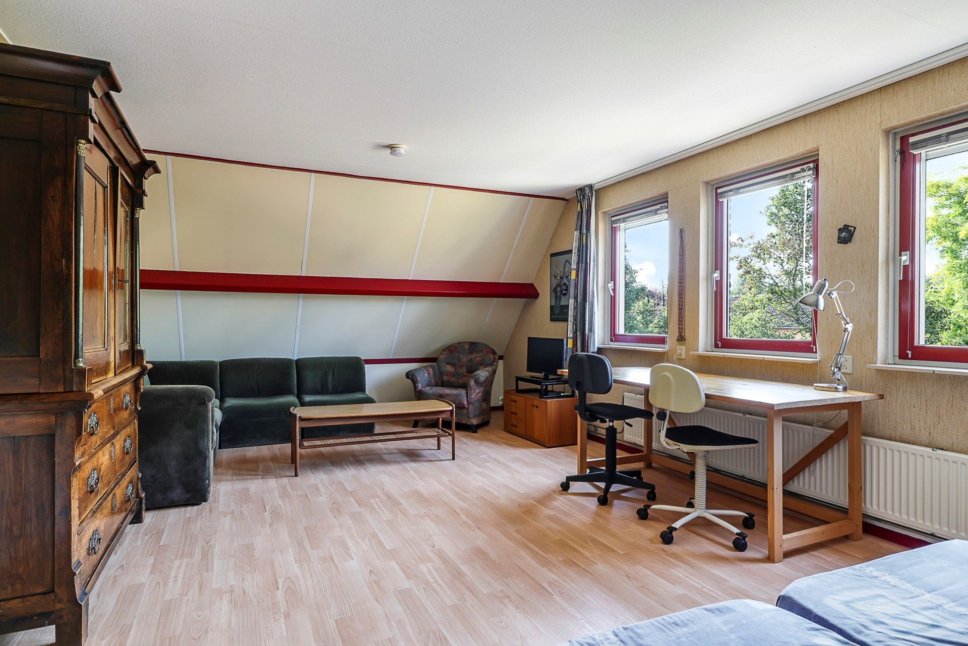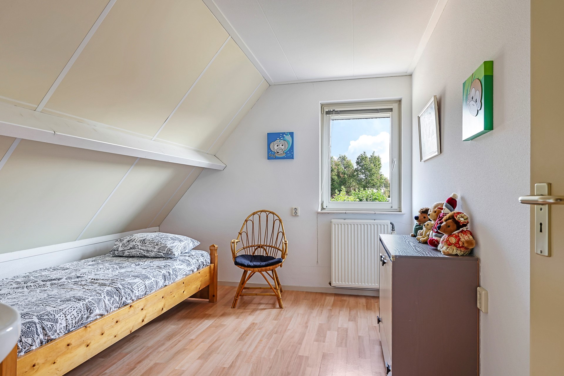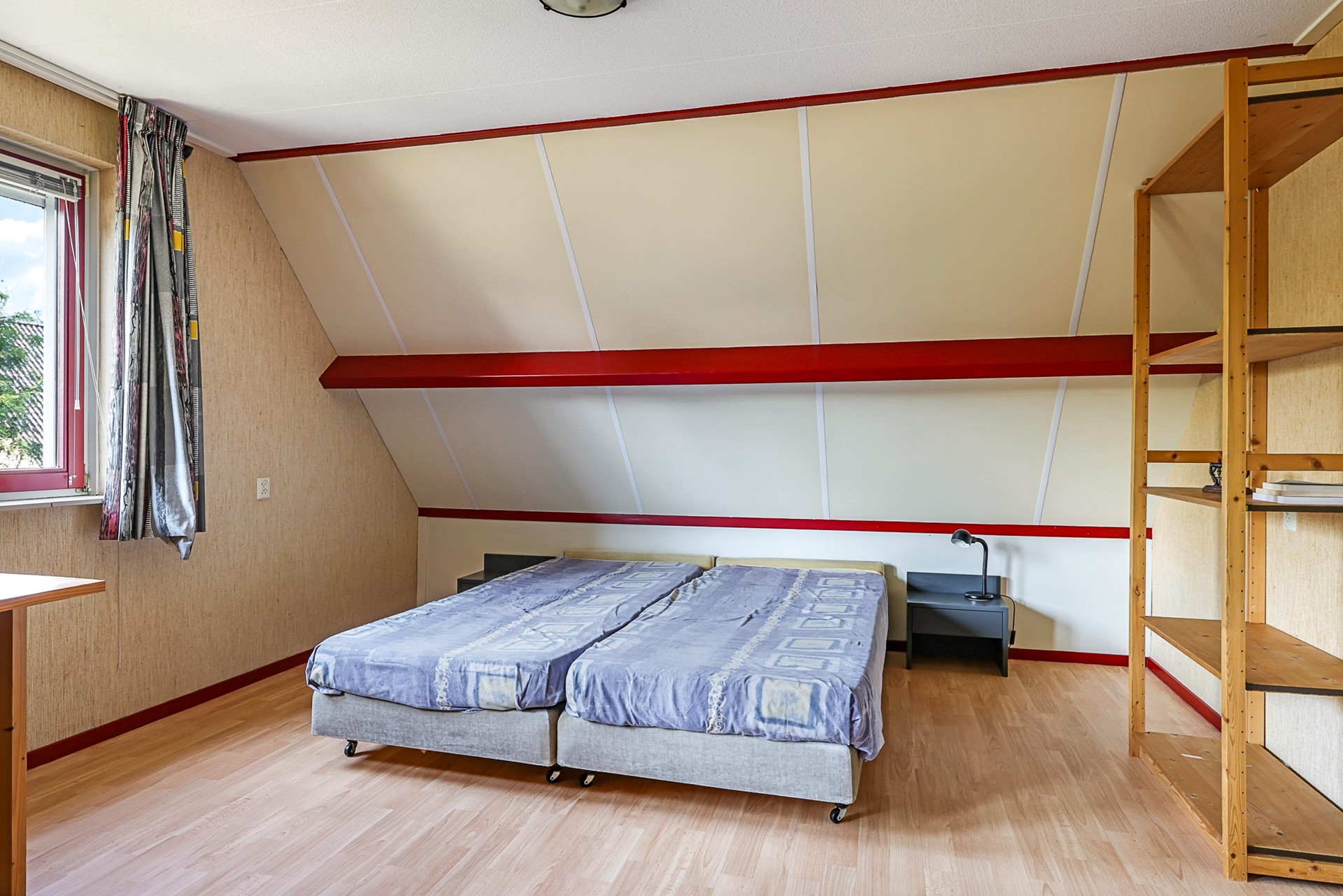 Boven kom je op een speelse vide die aansluit op de overloop. Vanaf hier heb je toegang tot drie slaapkamers en de tweede badkamer. Alles is netjes onderhouden, al kan een nieuwe eigenaar er natuurlijk voor kiezen om het geheel gemakkelijk een modernere uitstraling te geven. De master bedroom is bijzonder groot en biedt aanvullende mogelijkheden voor een werkplek, hobbyruimte of een ruim bemeten inloopkast. De andere twee slaapkamers zijn eveneens van prettig formaat. Vanuit één van deze kamers bereik je met een vlizotrap de zolder. De tweede badkamer van de woning is licht en neutraal, met een douche, wastafel en toilet.